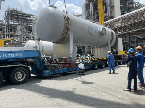 据付機器を構内運搬する為にトレーラーに